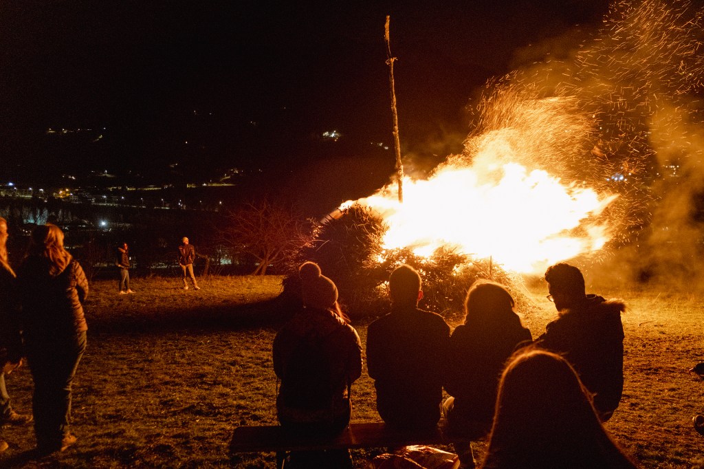 Ogni 16 febbraio sera, se Messer Vento lo permette, le nostre Valli si illuminano con piccoli, medi e grandi falò, che costruiti con maestria e cura, connettono cuori, spiriti, storie ed emozioni come astri di una costellazione che vista dall’alto disvela il volto di una storia che ci appartiene, ci riempie ed illumina il presente.